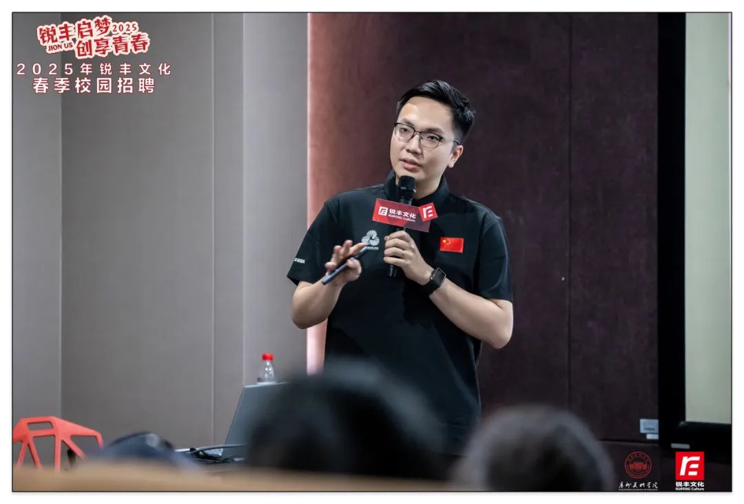 4月18日,廣州大學(xué)站以復(fù)合型人才培育為核心,搭建起多維度賦能平臺。活動現(xiàn)場,梁志書記對企業(yè)文化內(nèi)涵與銳豐文化的職業(yè)發(fā)展體系進(jìn)行了深度解讀。