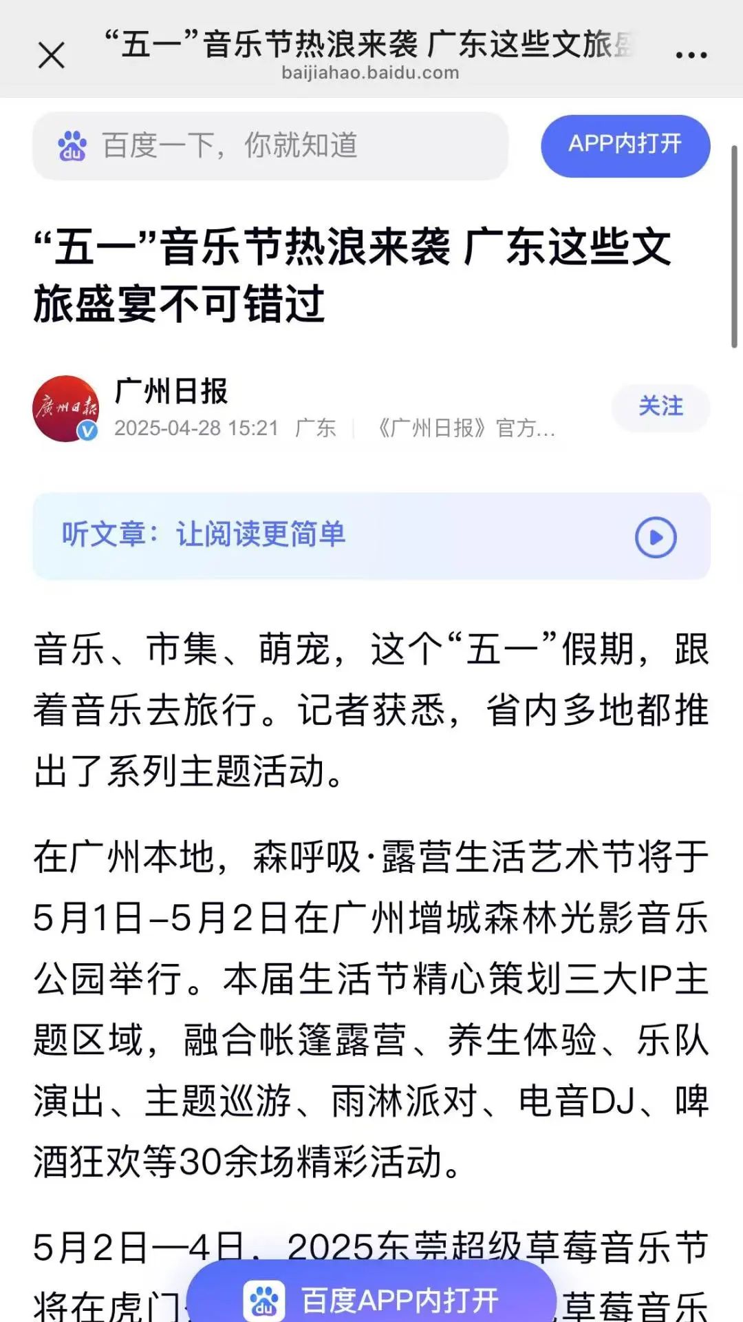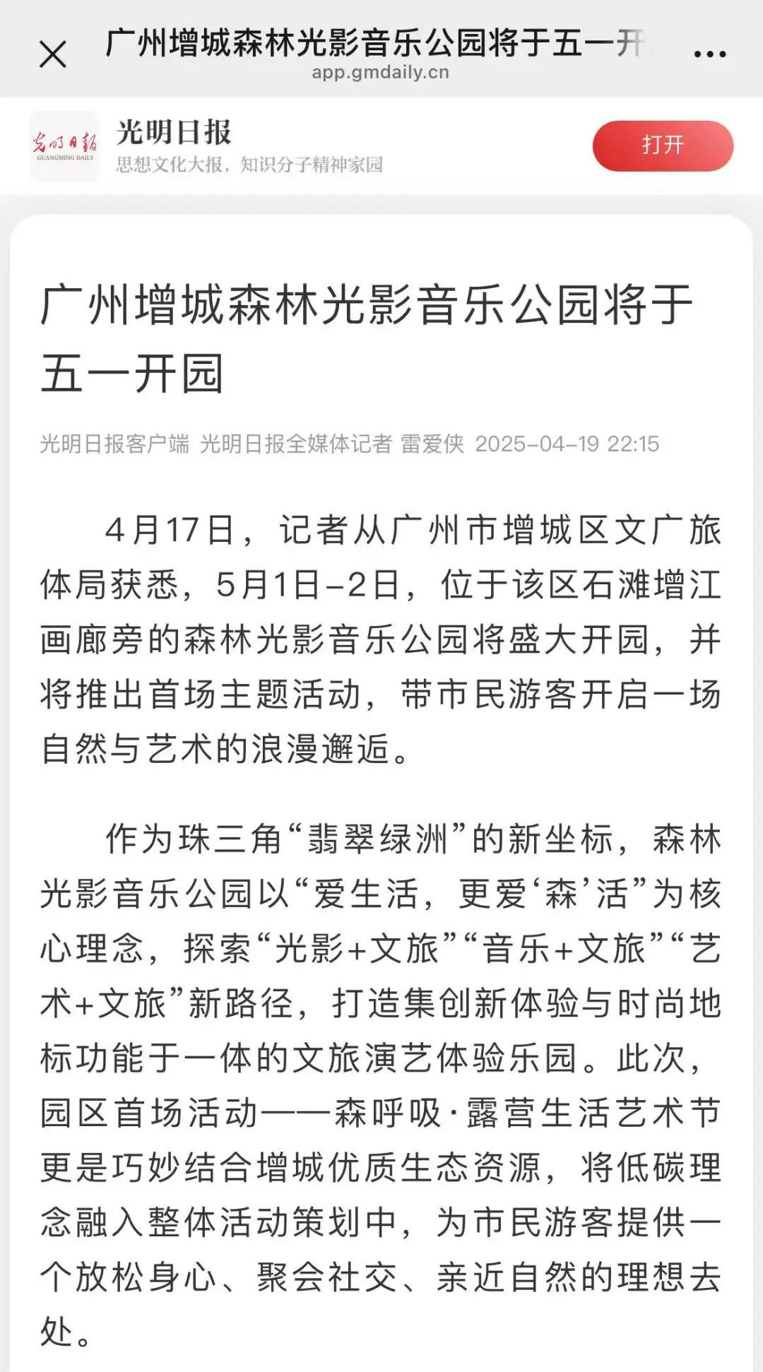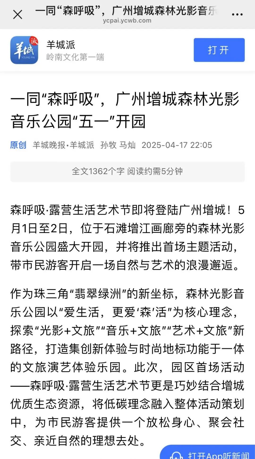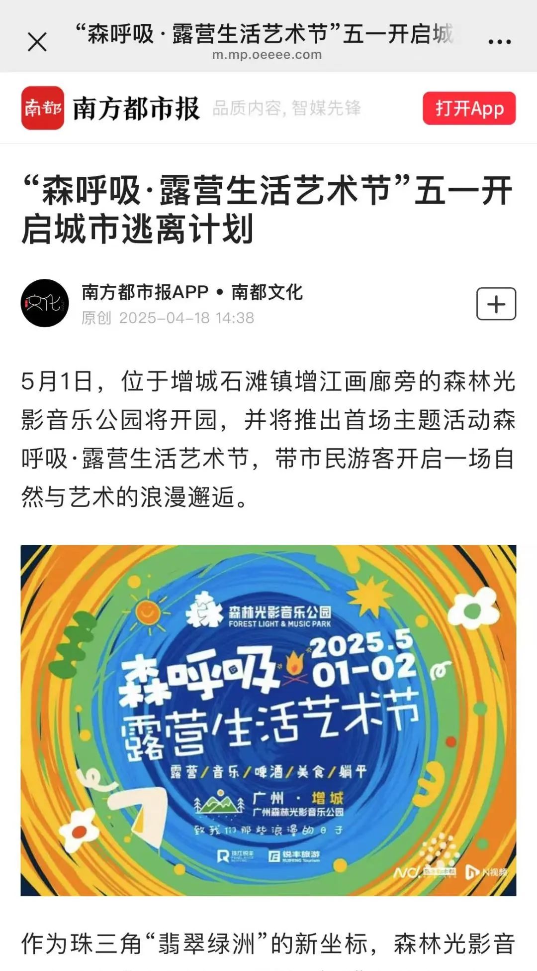 自官宣以來(lái),光明日?qǐng)?bào)、羊城晚報(bào)、南方都市報(bào)、廣州日?qǐng)?bào)、新快報(bào)等主流媒體集體聚焦,2025年“灣區(qū)音樂(lè)匯”系列活動(dòng)森呼吸·露營(yíng)生活藝術(shù)節(jié)已引發(fā)五一珠三角文旅熱潮。
