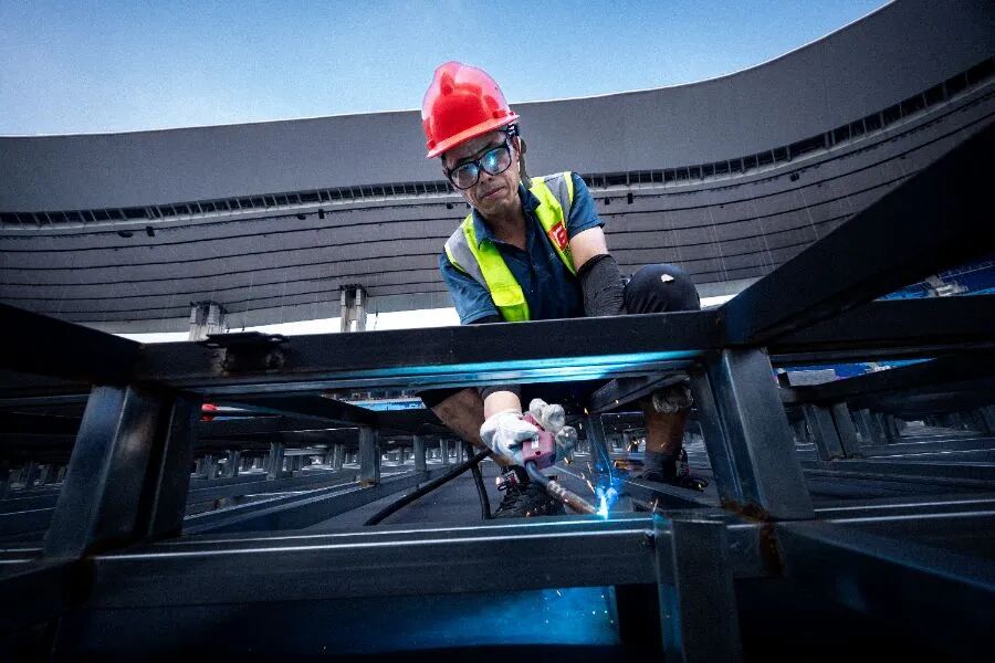 “時(shí)間緊、任務(wù)重,我們每天從早上7點(diǎn)輪班做到晚上9點(diǎn)半,無間隙施工?!睆垥詣P表示,廣州夏季高溫多雨,臺風(fēng)天氣頻繁,給露天作業(yè)帶來極大挑戰(zhàn)?!坝袝r(shí)剛搭好的結(jié)構(gòu)遇到暴雨就得緊急加固,臺風(fēng)預(yù)警一來更要全員應(yīng)急響應(yīng)。但再難我們也要頂住,必須保質(zhì)保量完成任務(wù)?!?