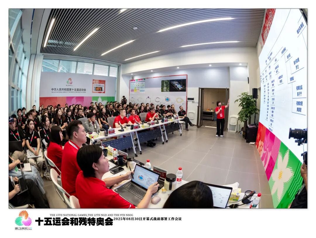 8月30日,在十五運(yùn)會(huì)開(kāi)幕式倒計(jì)時(shí)71天之際,十五運(yùn)會(huì)開(kāi)幕式主創(chuàng)團(tuán)隊(duì)召開(kāi)了戰(zhàn)前部署工作會(huì)議。開(kāi)幕式總制作人、銳豐科技董事長(zhǎng)王銳祥,總監(jiān)制劉偉強(qiáng),副總導(dǎo)演、銳豐文化總經(jīng)理黃沛凌,執(zhí)行總導(dǎo)演孟可等百余名骨干參會(huì)。九月份,開(kāi)幕式籌備工作全面進(jìn)入場(chǎng)內(nèi)排練階段。